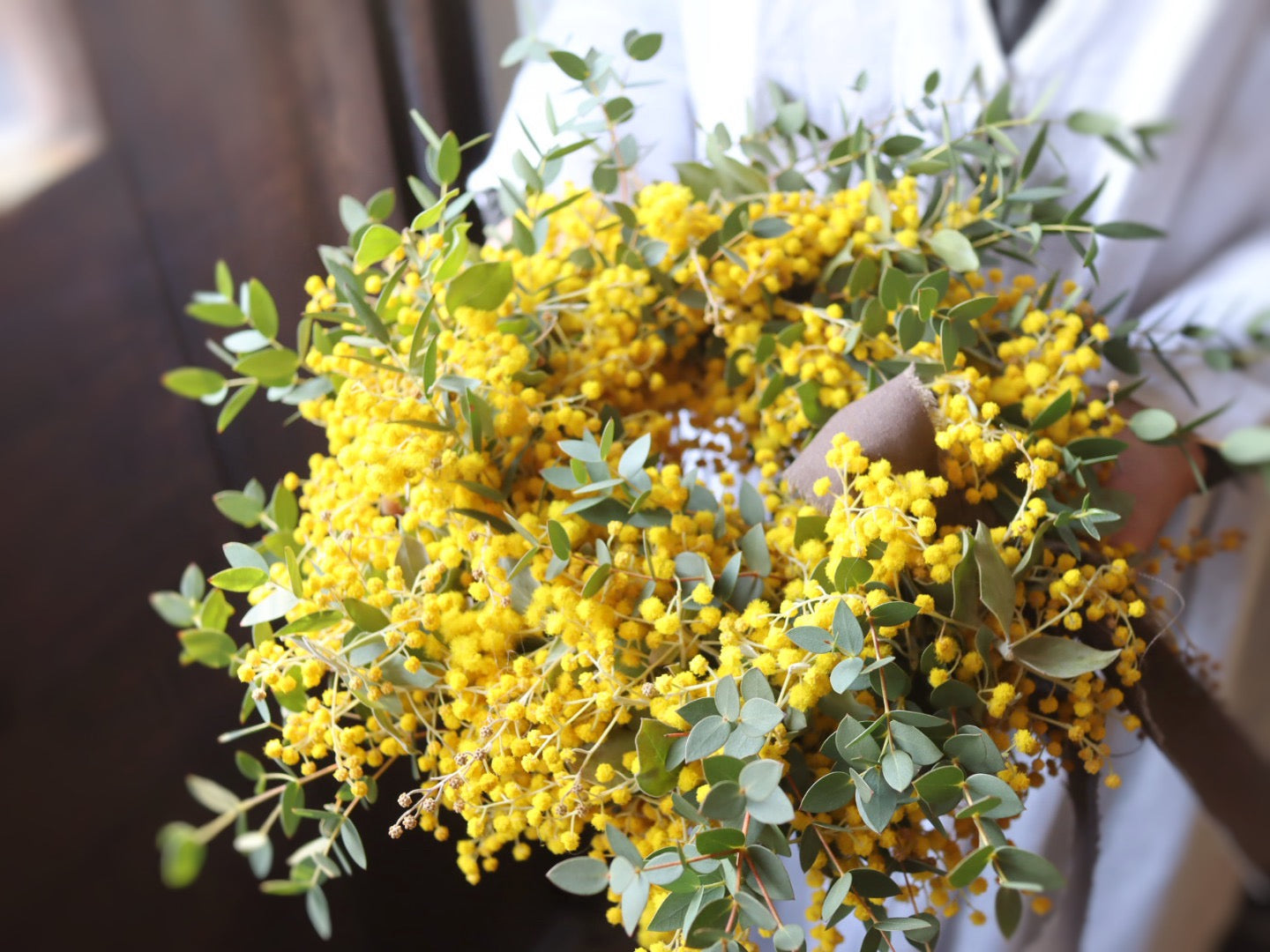 主な使用花材 銀葉アカシアまたはパールアカシア・ユーカリ