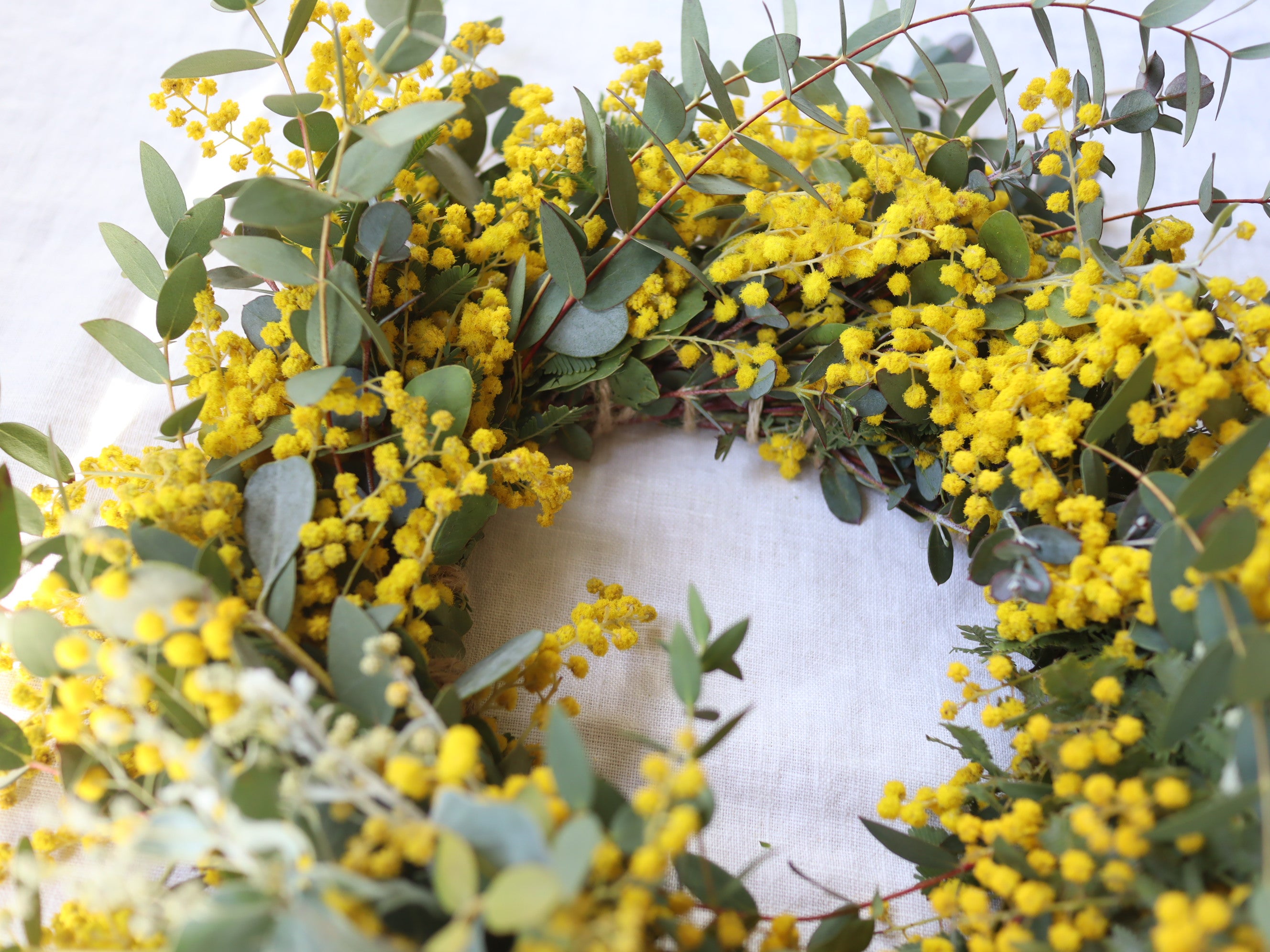 一足先に春の訪れを感じられるような、ミモザのリースを作ります。
