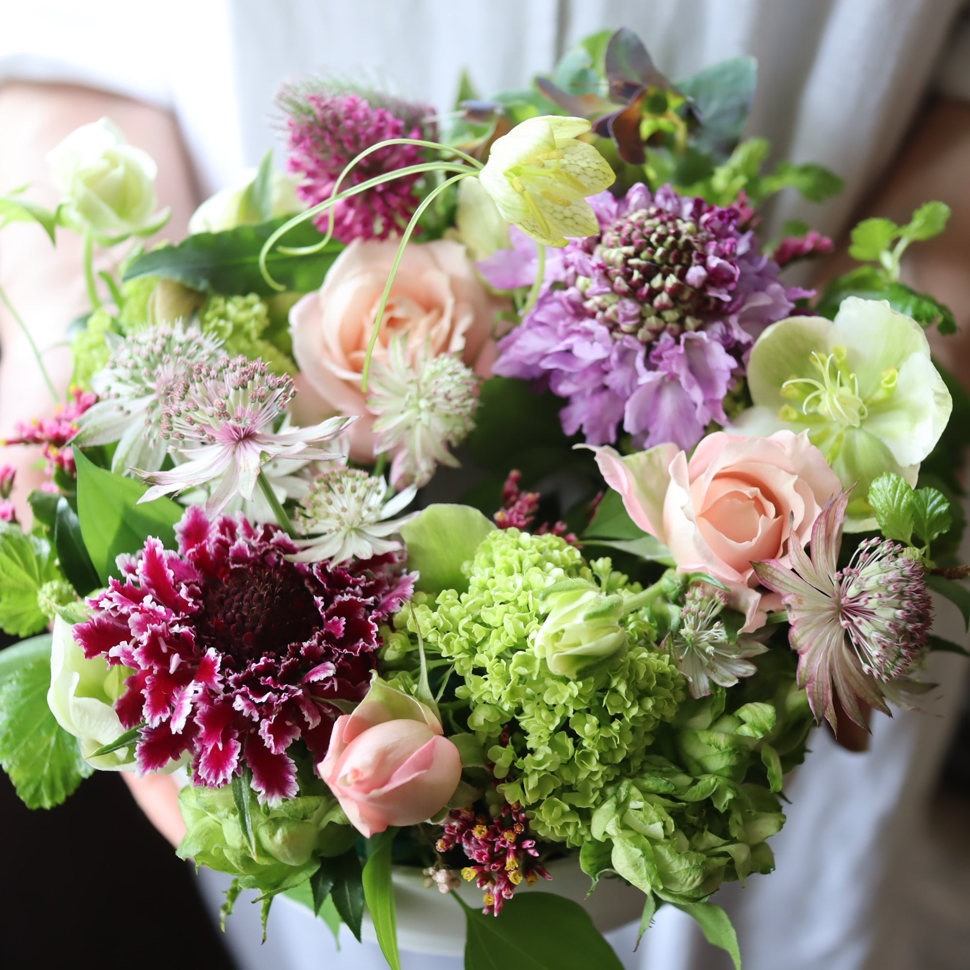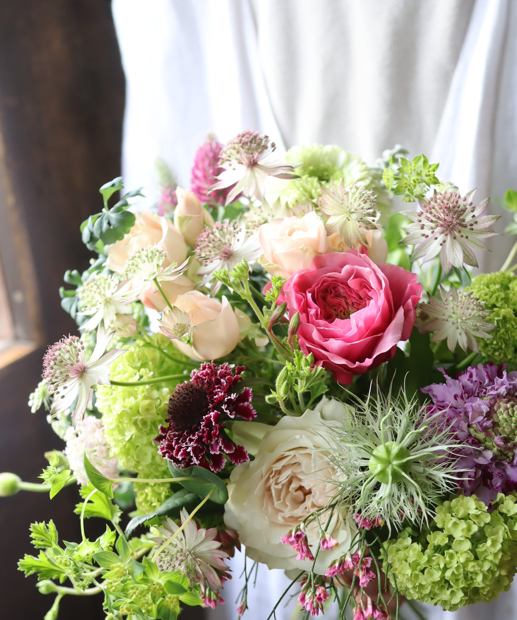 ふんわりやさしいトーンでまとめた大人のナチュラルブーケ。